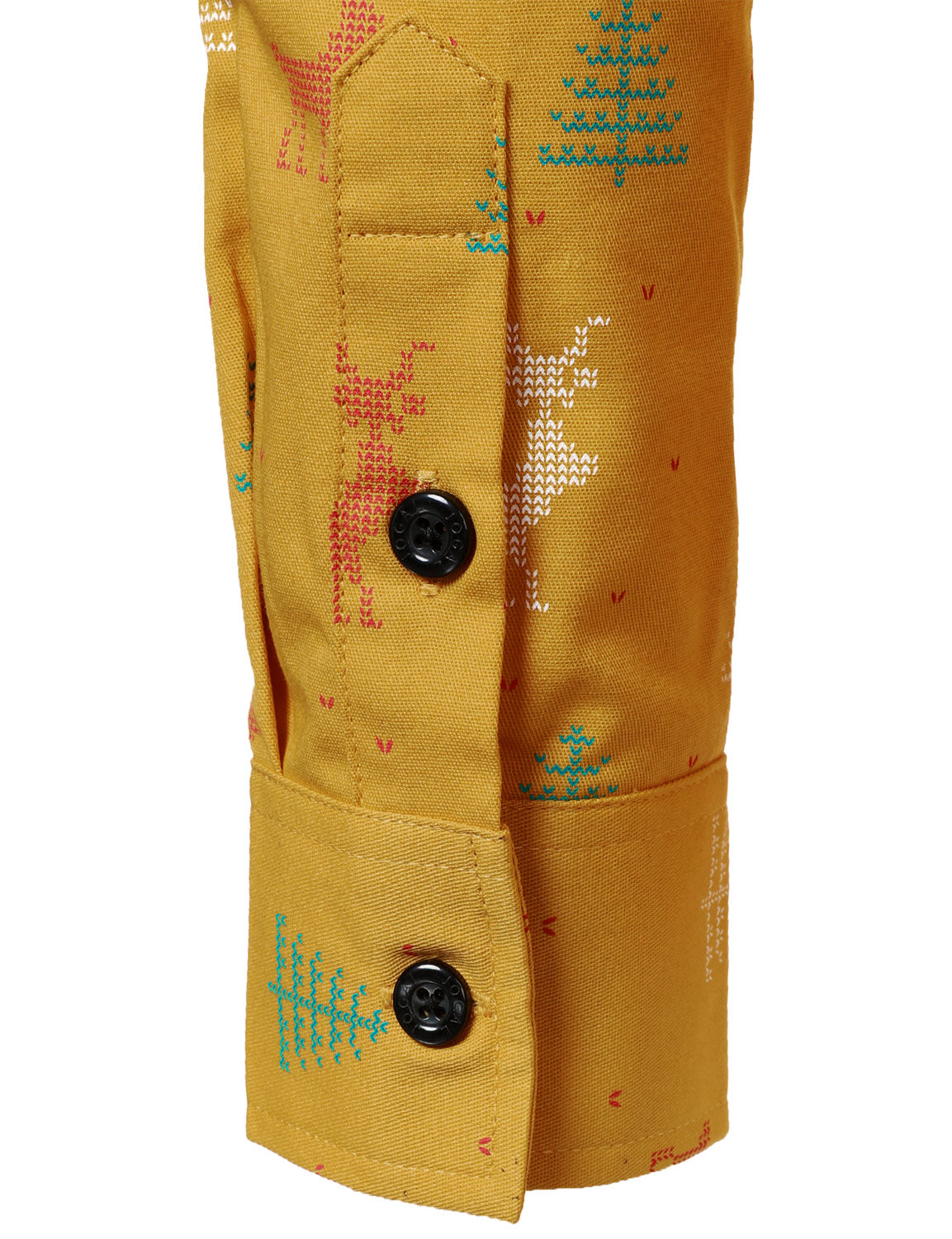 Men's Christmas Tree Moose Print Breathable Yellow Long Sleeve Shirt